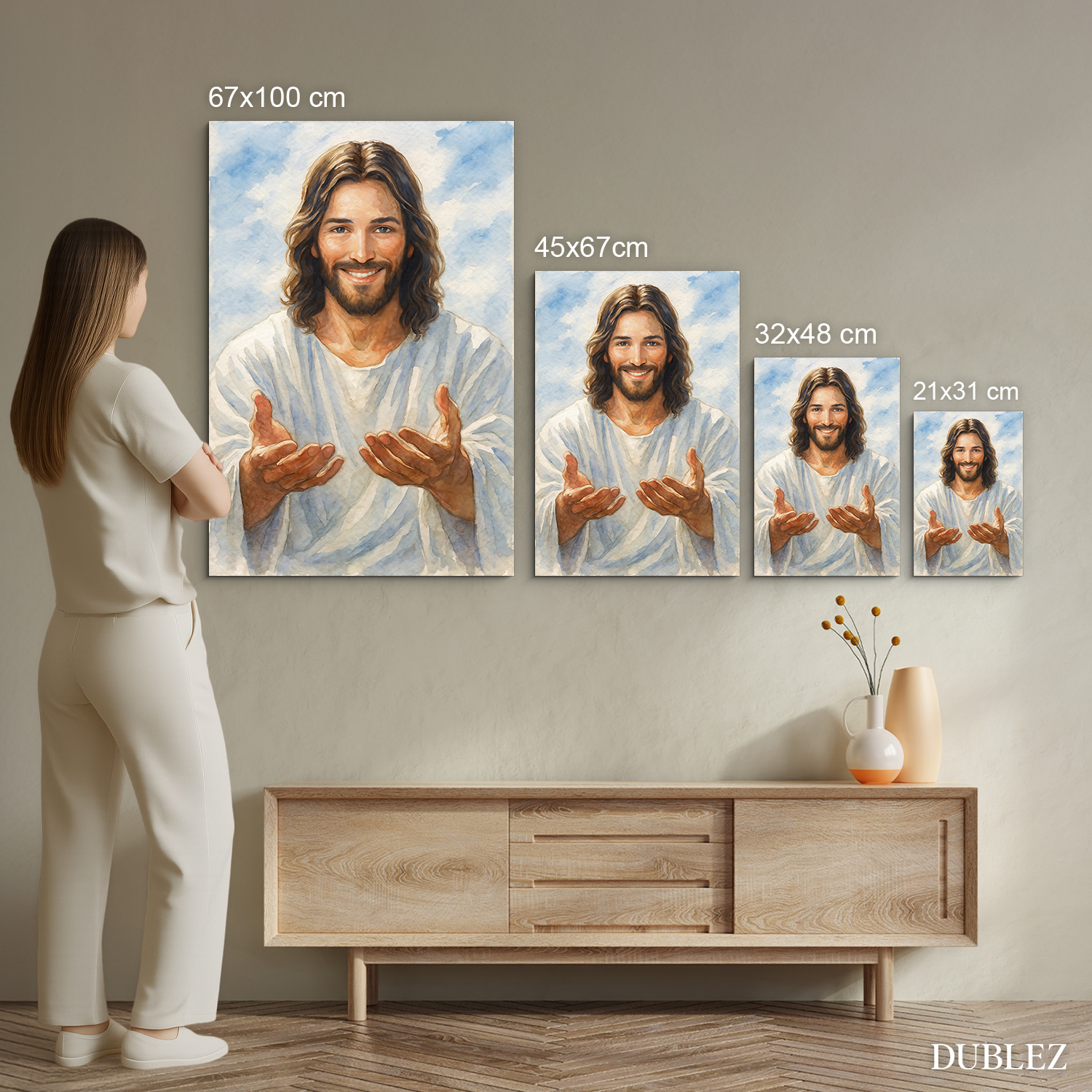 Dřevěný obraz Ježíš tě volá přináší do domova klid, víru a naději. Ježíš na obraze s otevřenou náručí symbolizuje přijetí, odpuštění a bezmeznou lásku. Jemné barvy, precizní zpracování a kvalitní dřevo vytvářejí dojem malby. Křesťanský obraz na zeď je ideálním doplňkem do obývacího pokoje či ložnice.