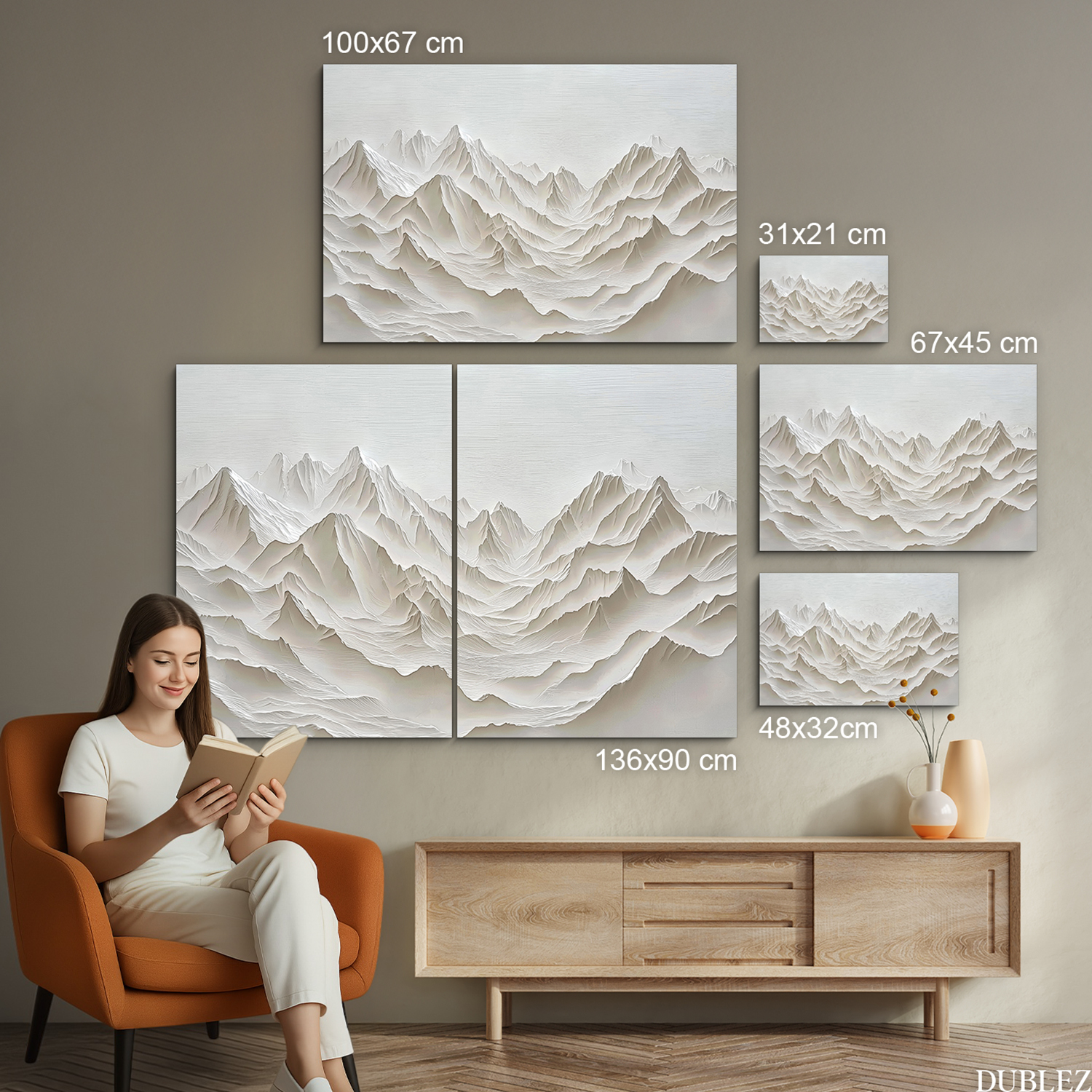 Význam obrazu: Hory jsou symbolem stability, odolnosti a vytrvalosti. V bílé podobě představují čistotu a klid, přičemž připomínají, že síla může být zároveň jednoduchá a krásná.