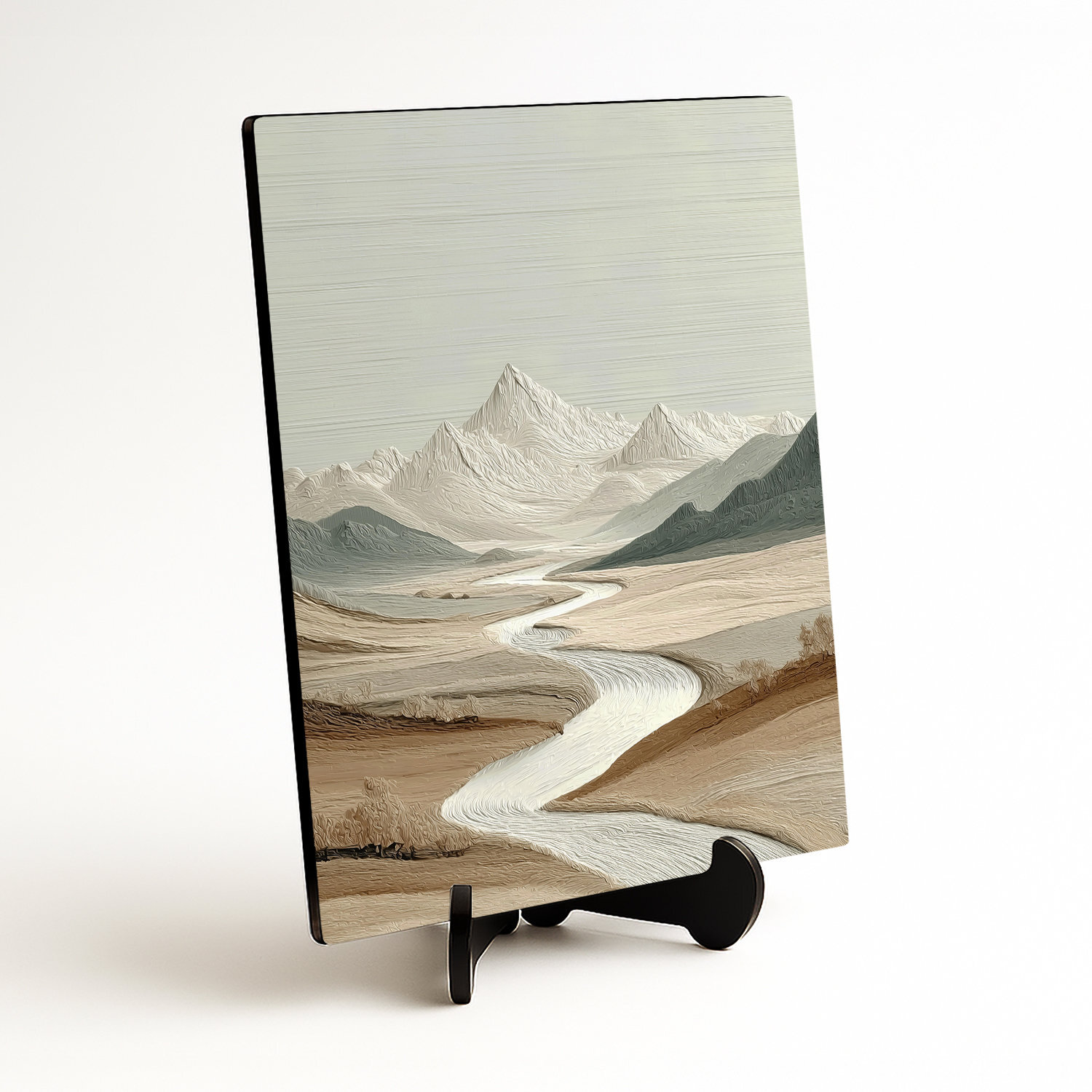 Designový obraz přírody přináší do interiéru harmonii, klid a nadčasovou krásu horské krajiny. Jemně plynoucí řeka, vrchy a neutrální barvy vytvářejí dokonalý obraz do ložnice či obývacího pokoje. Dřevěný obraz osloví každého, kdo touží po přírodním motivu s klidnou energií a moderním designem.