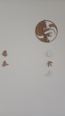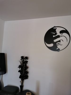 Dřevěná dekorace Kočky v objetí je unikátním bytovým doplňkem na zeď. Obraz kočiček symbolizuje jedinečnost těchto velmi oblíbených domácích zvířat. Dřevěná dekorace v podobě kočky je skvělým dárkem pro každého, kdo má rád kočky nebo filozofii Jin-jang. Pokud máte rádi umění, přírodu, nejnovější trendy a jednoduchost, tento výrobek splní všechna vaše očekávání.