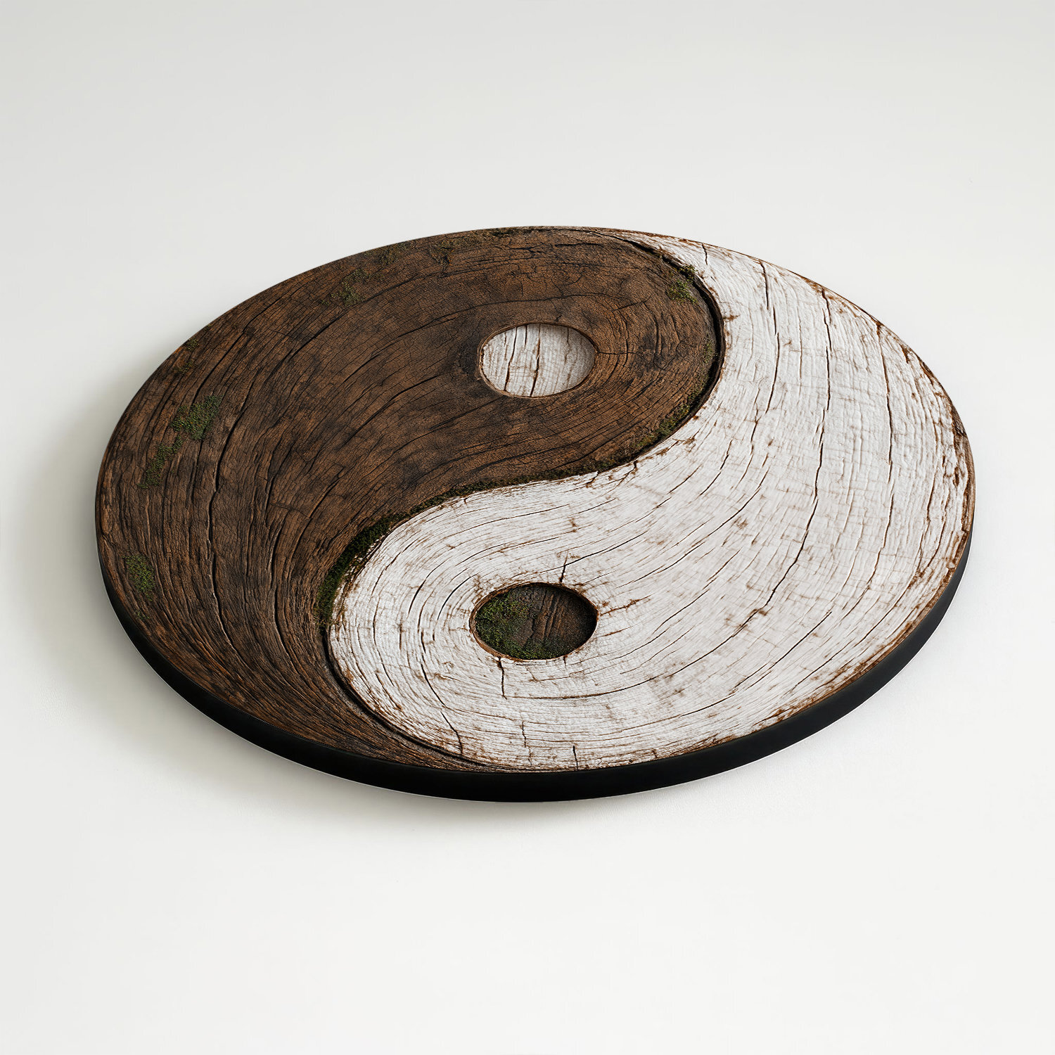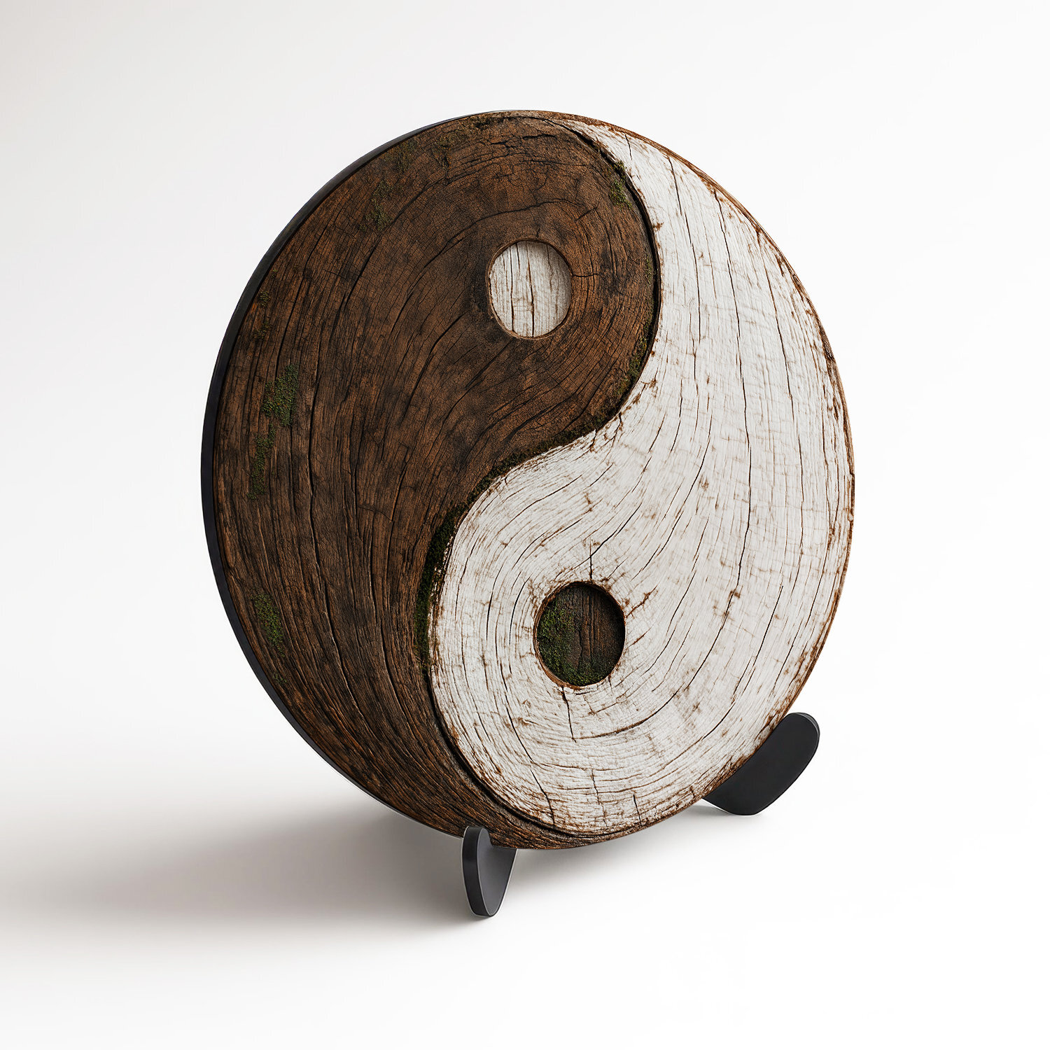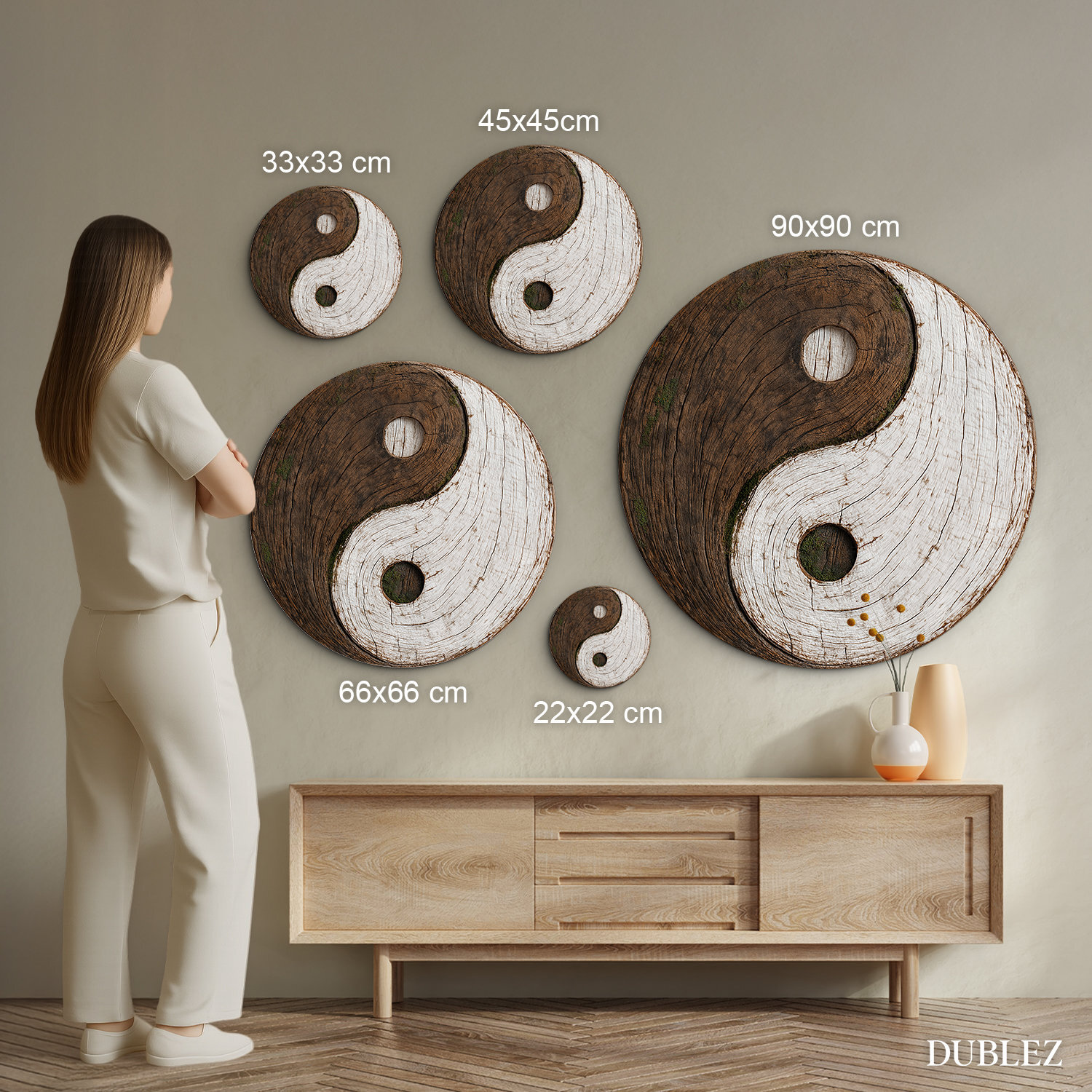 Dřevěný obraz jin a jang v přírodní struktuře dřeva je symbolem rovnováhy. Kombinace hnědých a bílých odstínů, doplněná realistickou texturou dřevěných letokruhů, působí přirozeně, harmonicky a nadčasově. Dřevěný obraz jin jang se hodí do boho nebo skandinávského interiéru. Vynikne v obývacím pokoji, ložnici nebo kanceláři.