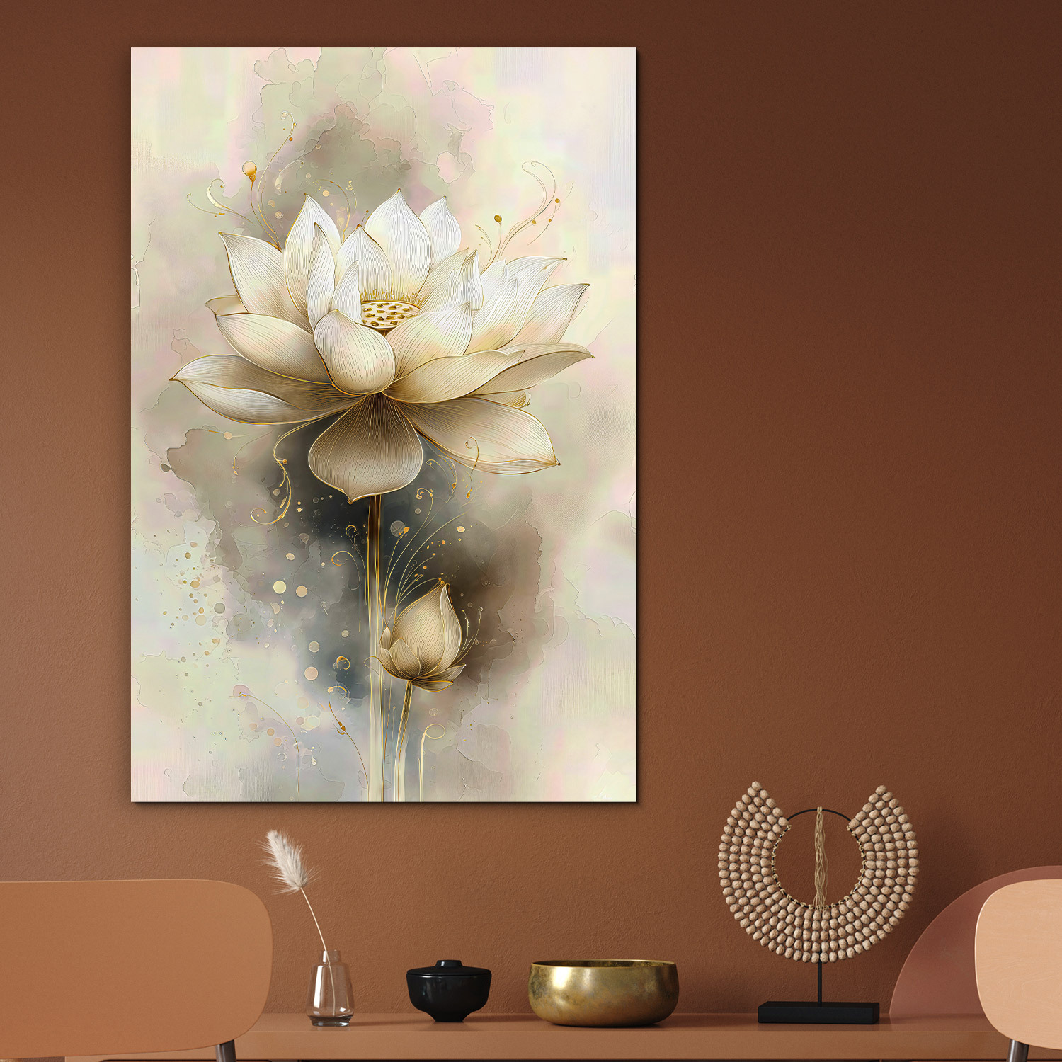 Význam obrazu: Lotosový květ přináší do interiéru vyrovnanost, optimismus a jemnou energii, která podporuje klidné a inspirativní prostředí.