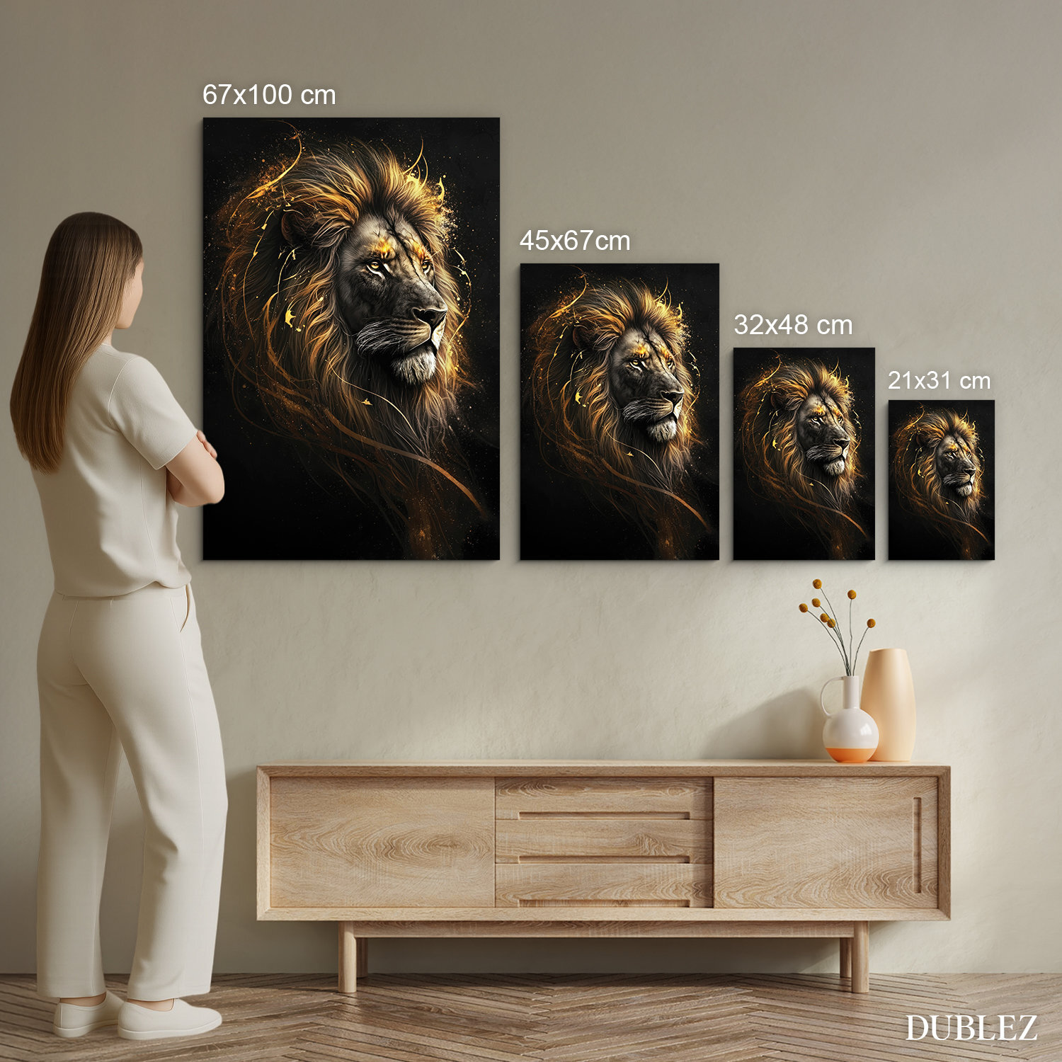 Impozantní obraz lva v zářivých zlatých a černých barvách vyniká svou silou a vznešeností. Obraz lva přináší do každé místnosti nádech divoké přírody a je ideální pro jakýkoli interiér, orientální i moderní. Doporučujeme jej umístit do obývacího pokoje, pracovny nebo ložnice, kde se stane centrálním prvkem místnosti. Tento obraz je také originálním dárkem pro muže narozeného ve znamení lva.