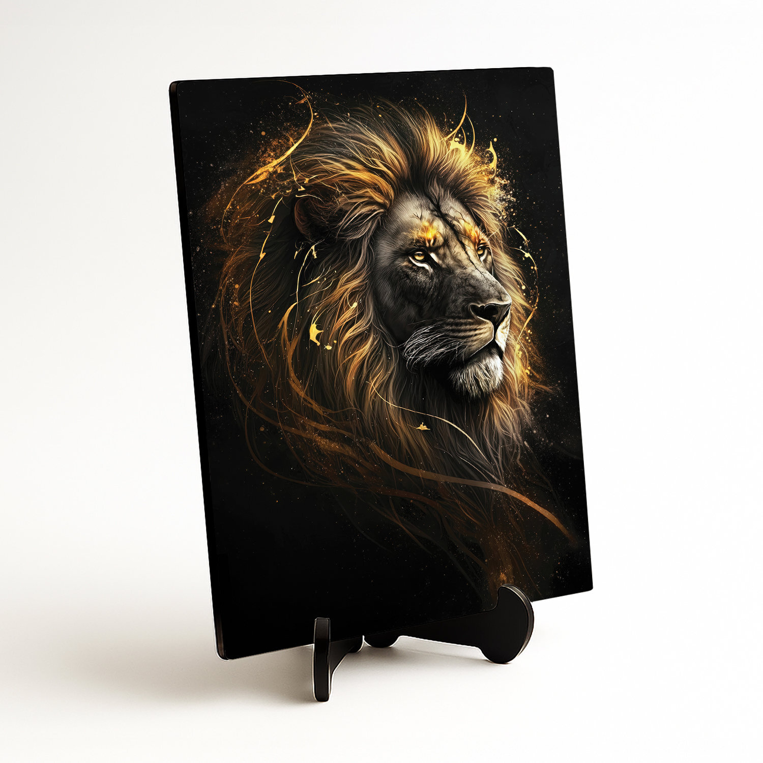 Význam obrazu: Obraz lva symbolizuje sílu, odvahu a královskou důstojnost. Zlaté a černé tóny na obraze zvýrazňují jeho vznešený postoj a vyjadřují neomezenou moc.