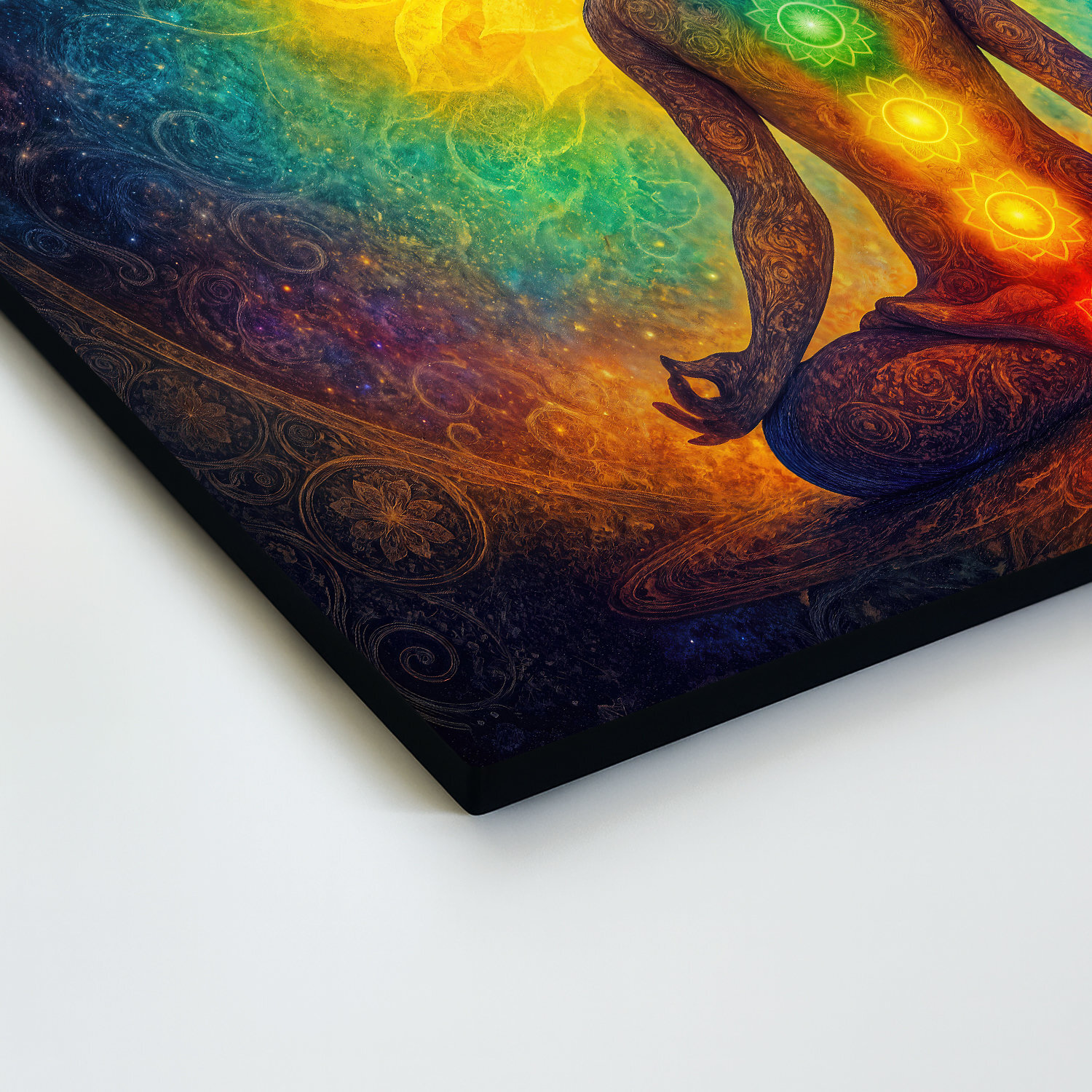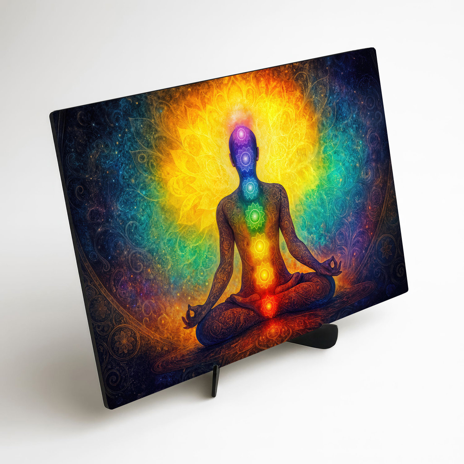 Dřevěný obraz meditace - Jóga a čakry
