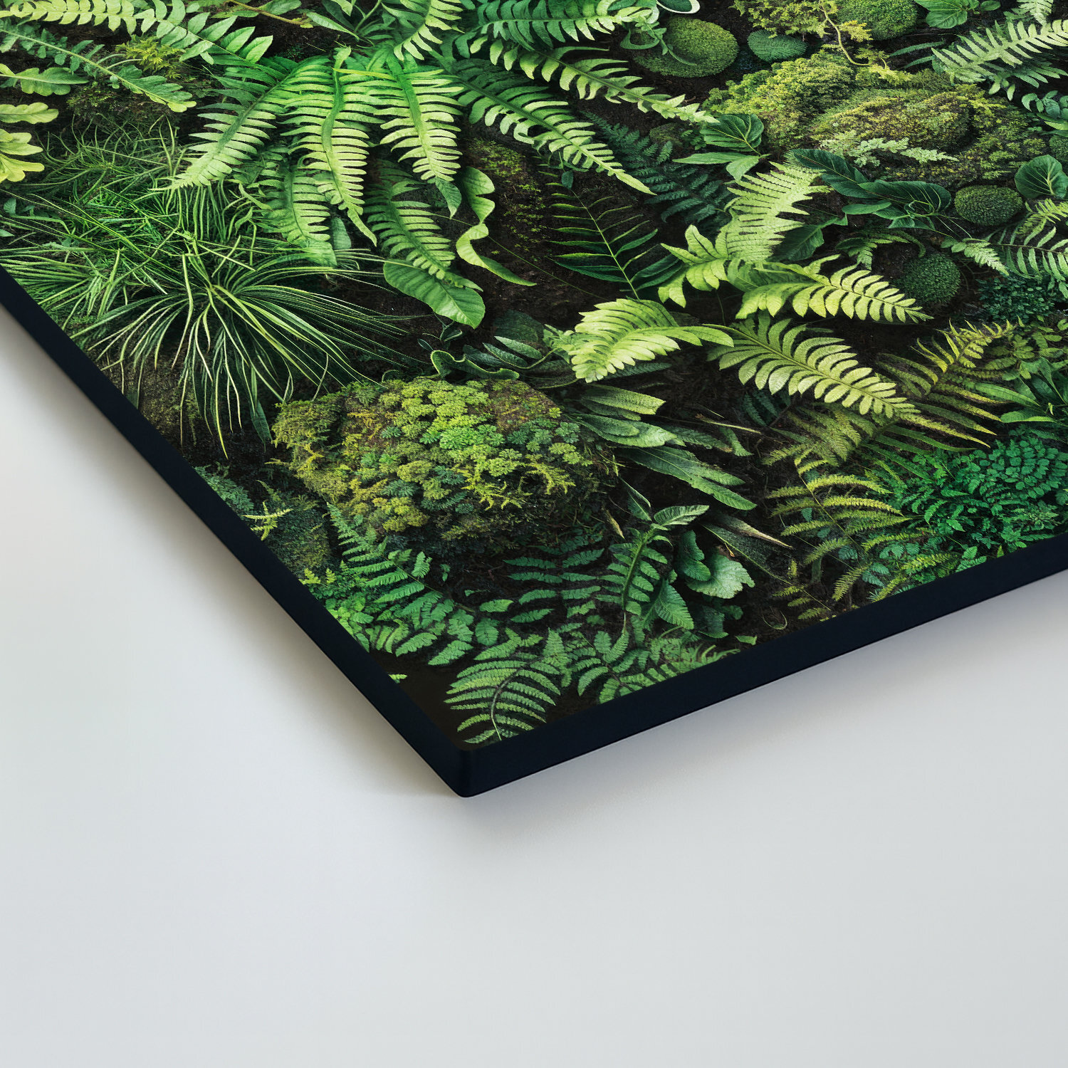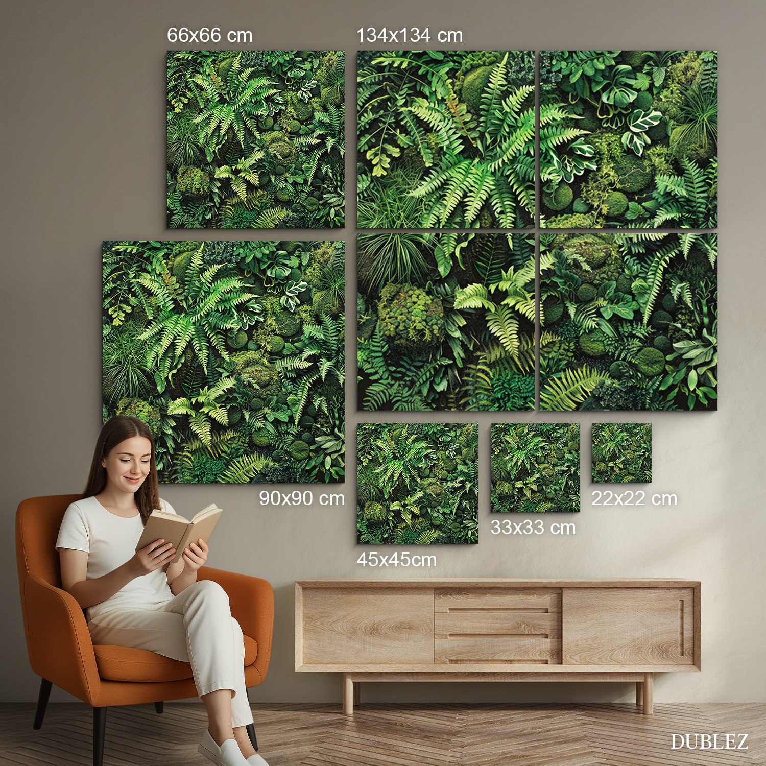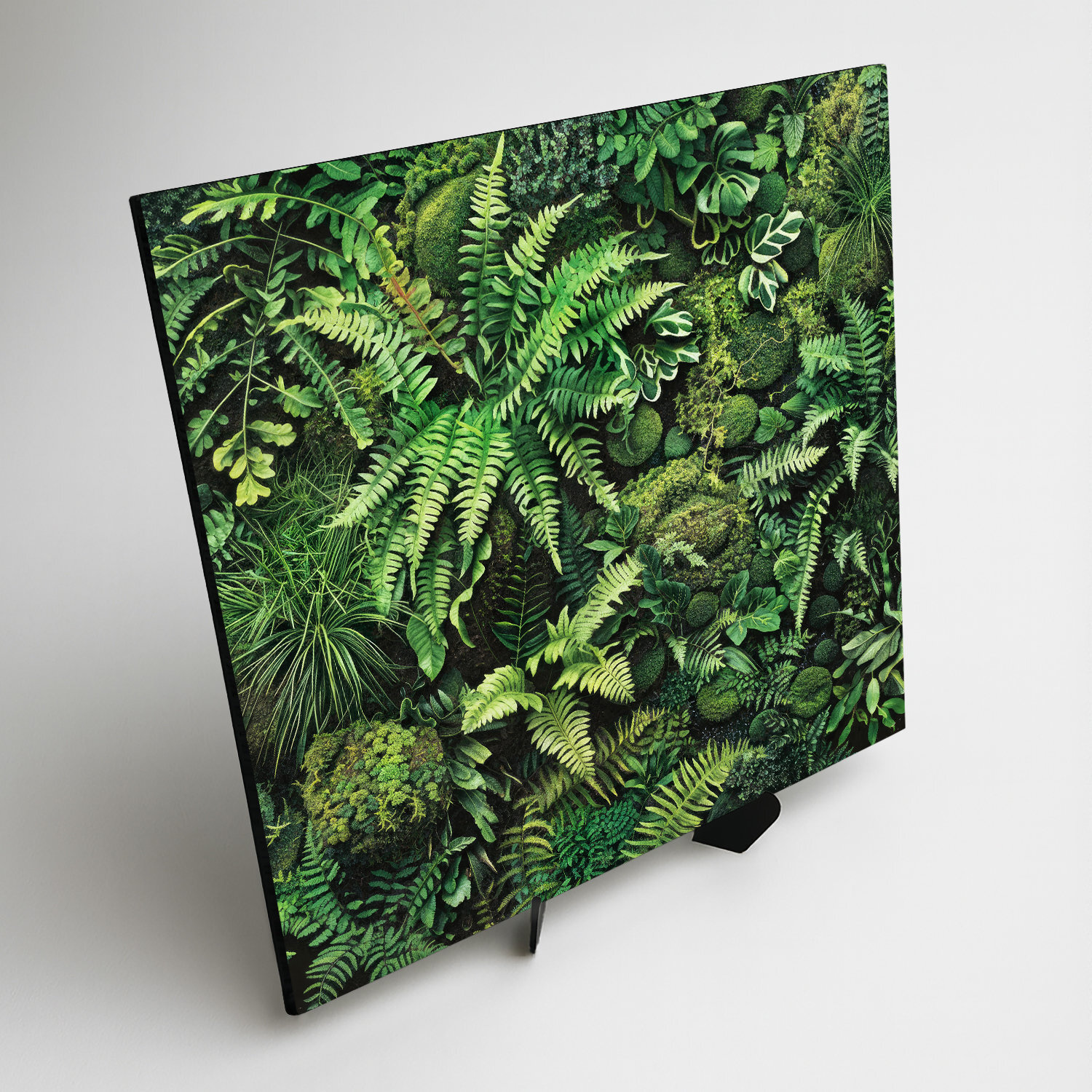 Význam: Obraz zobrazuje rozmanité zelené rostliny, hlavně kapradiny a mechy, což symbolizuje obnovu, růst a diverzitu přírody. Dominantní zelená barva podporuje pocit klidu a zdůrazňuje důležitost ekologického povědomí a ochrany životního prostředí. Celkový význam obrazu vyzařuje krásu a složitost přírodního světa.