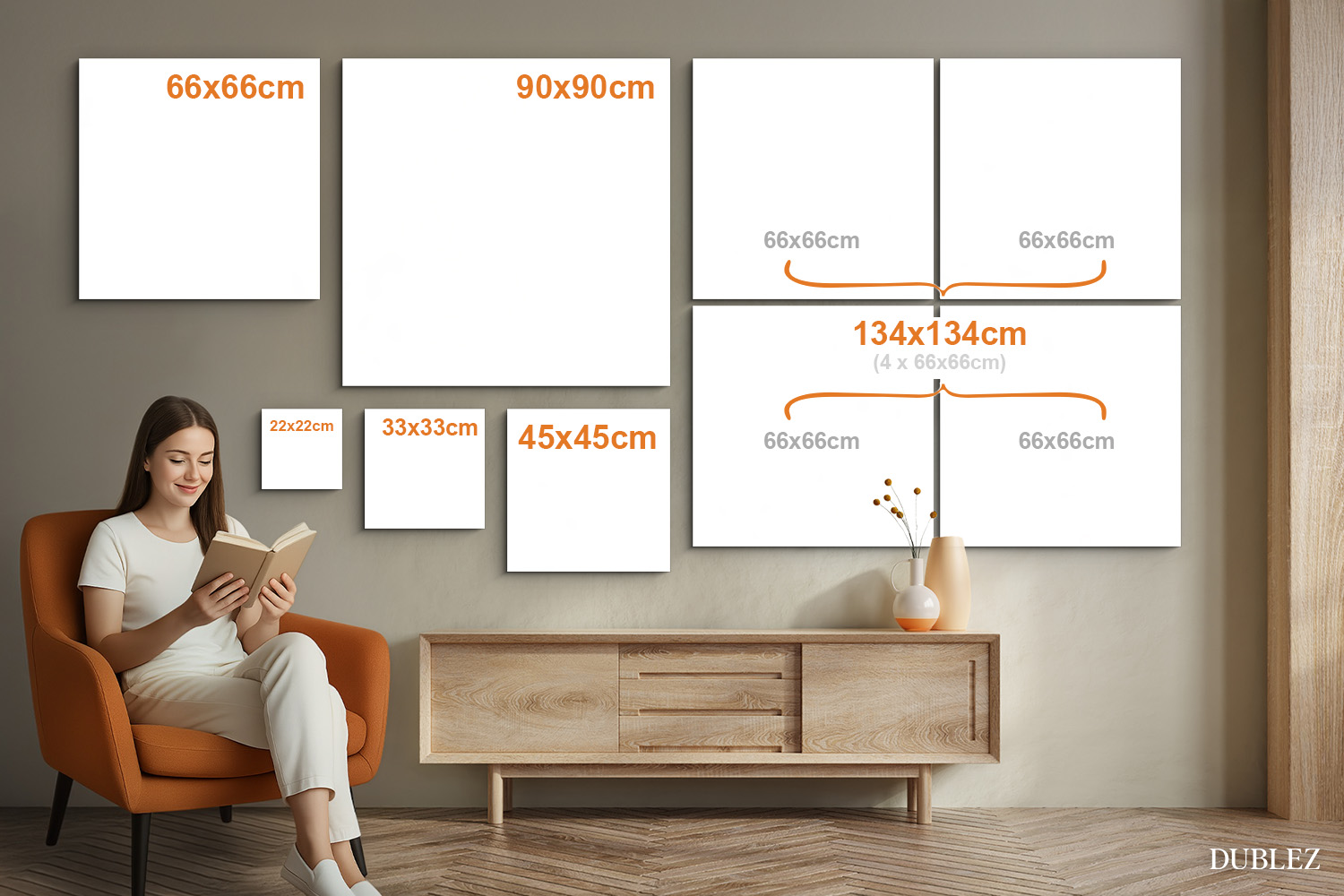 - 22x22 cm, 33x33 cm, 45x45 cm, 66x66 cm, 90x90 cm - Obraz sestává z jednoho kusu.