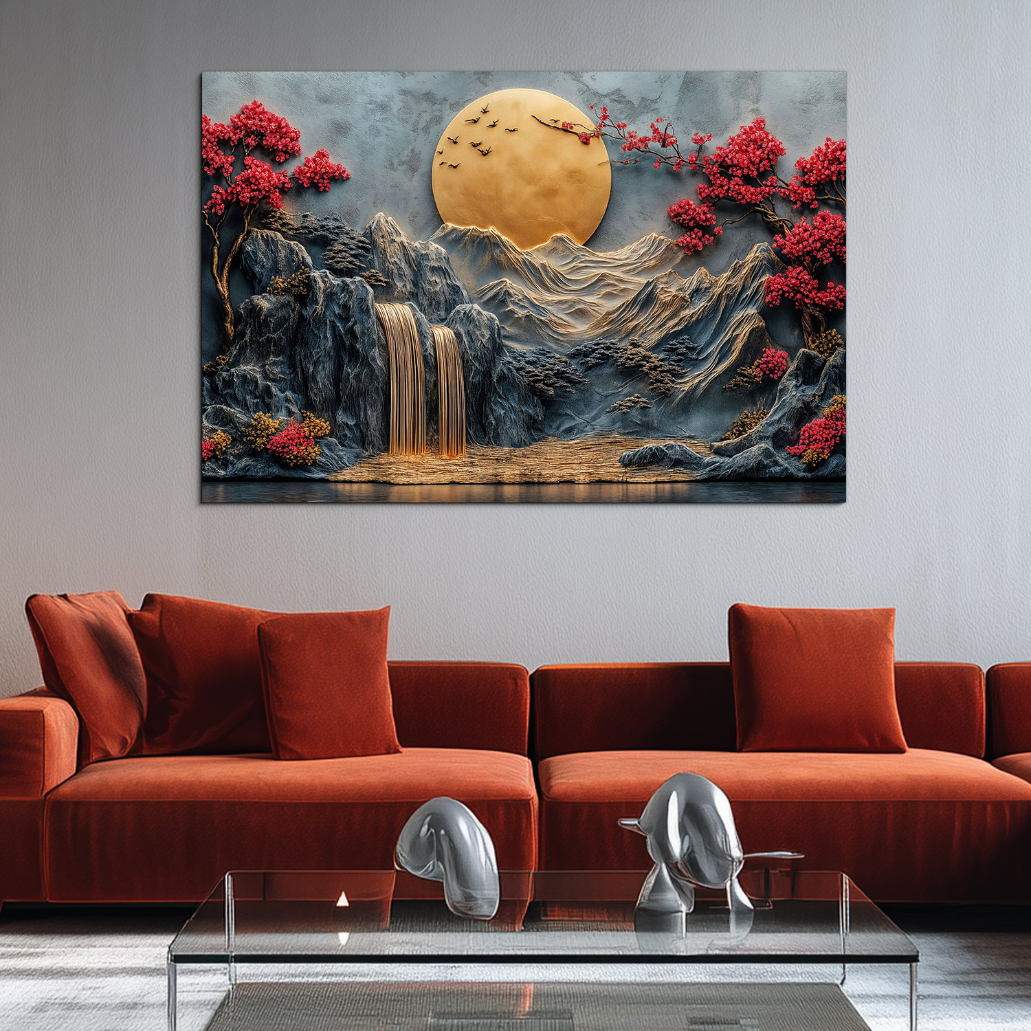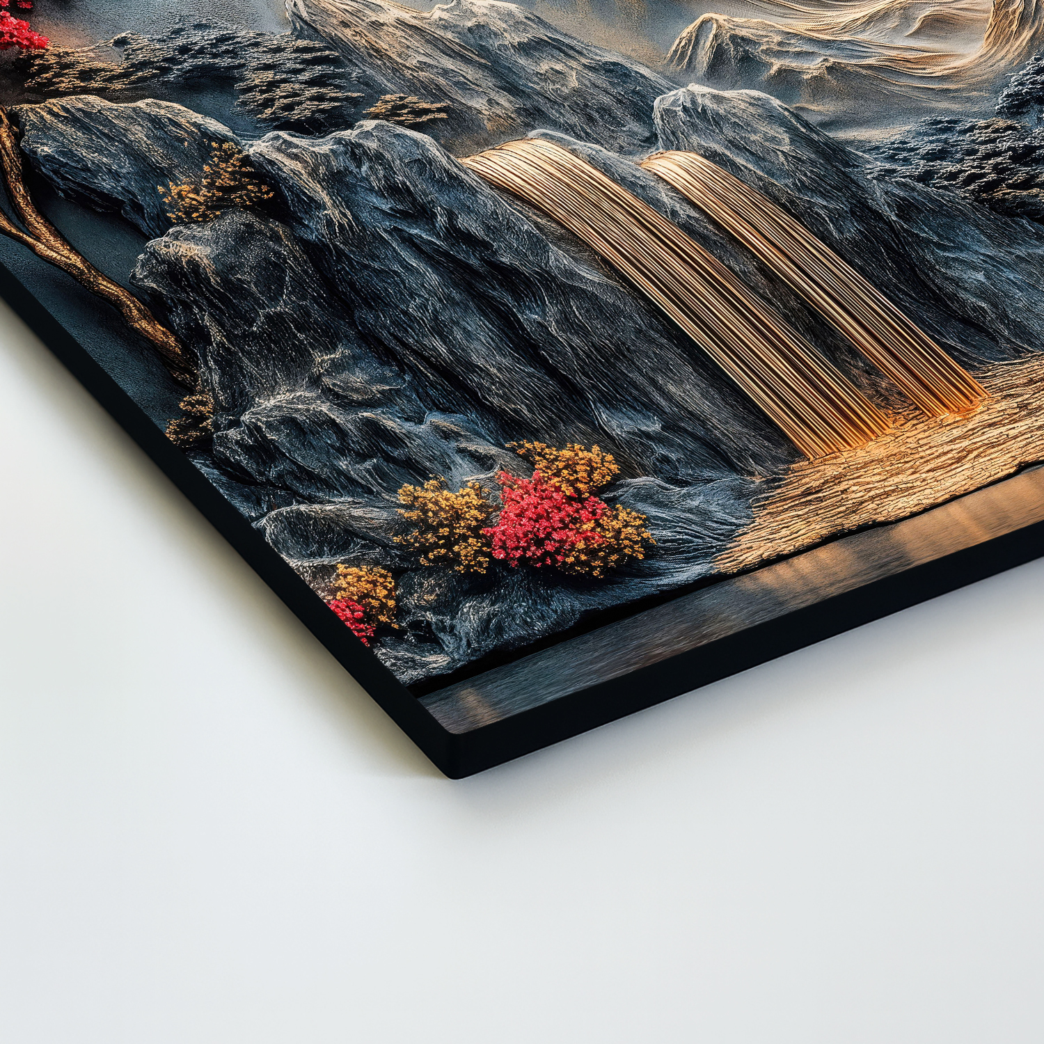 • Dřevěný obraz - Zlatý měsíc nad vodopádem
