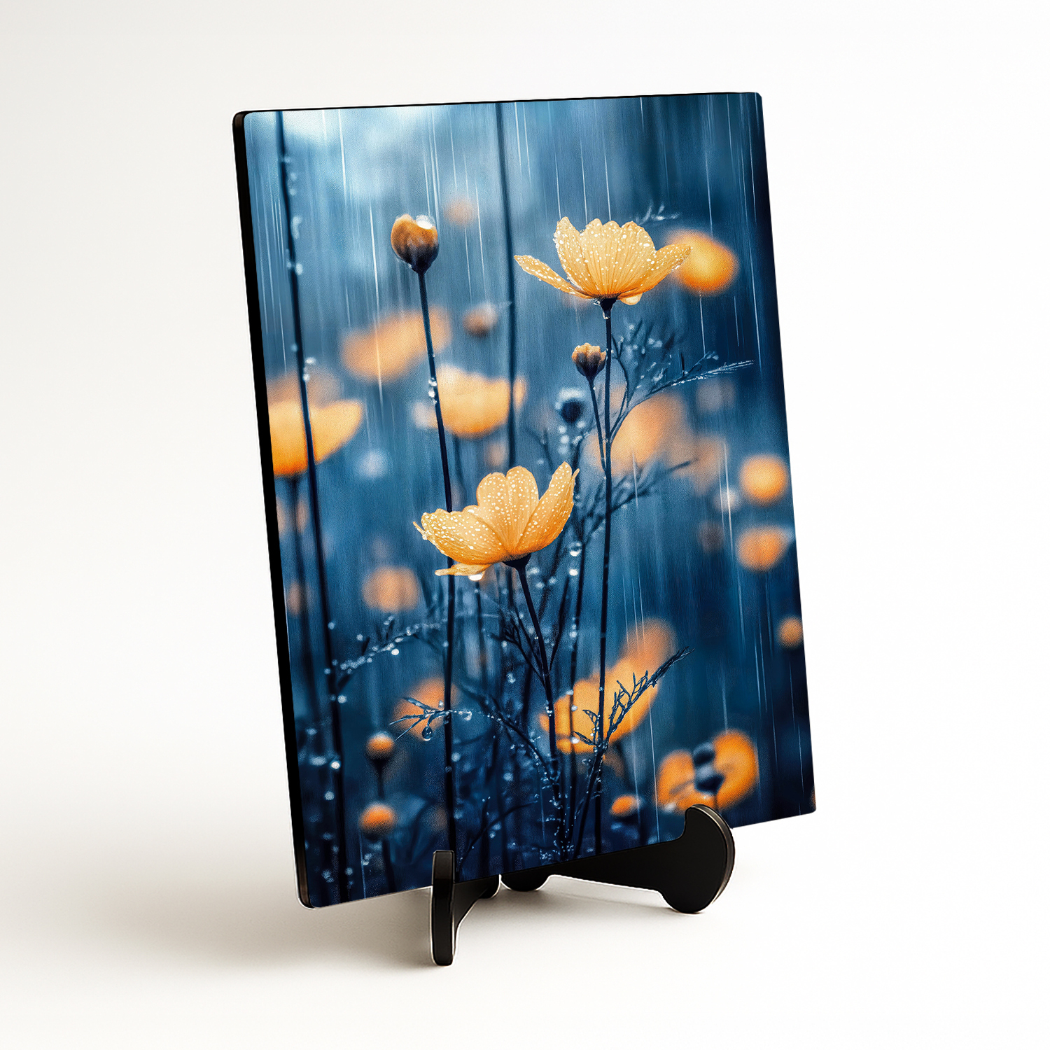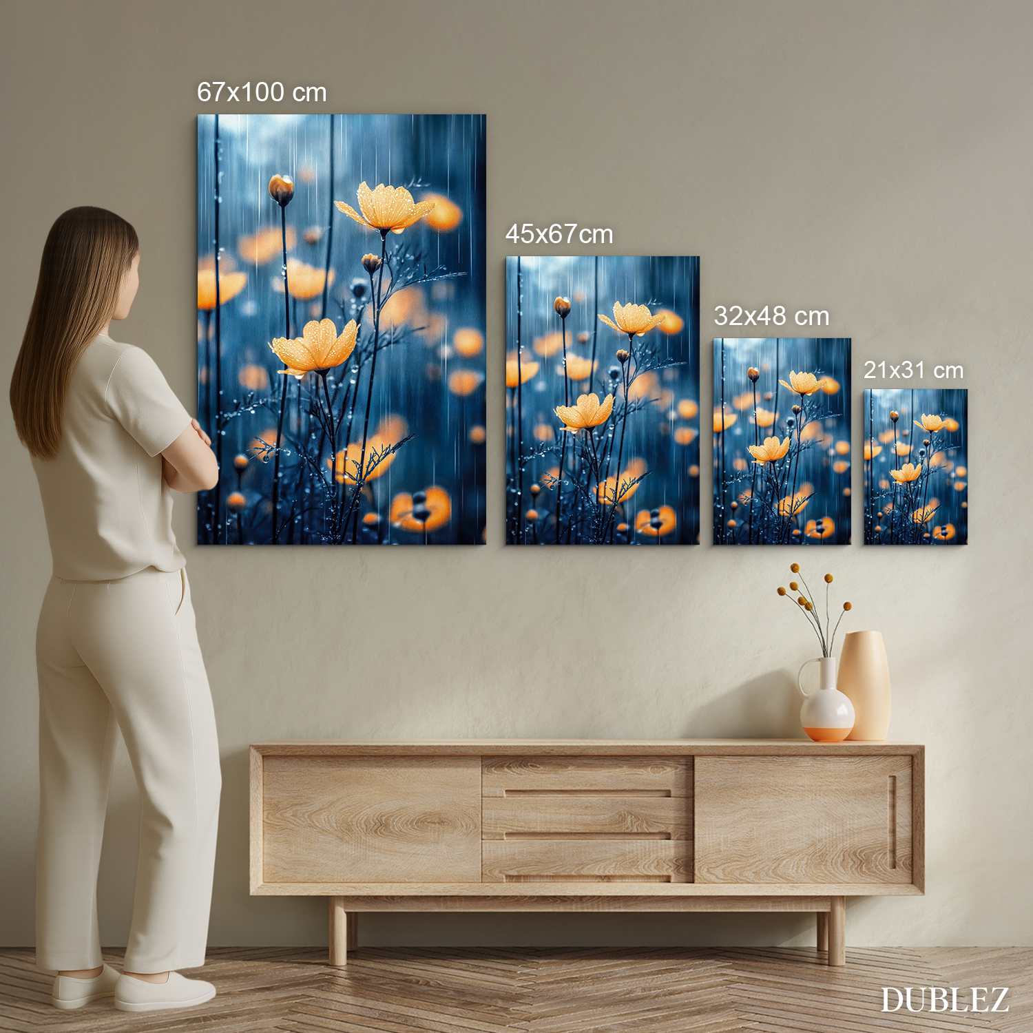 Vneste do svého domova klid a krásu žlutých květin v dešti. Dřevěný obraz působí jemně a klidně. Hodí se do obývacího pokoje, ložnice nebo kanceláře, kde vytvoří teplou a útulnou atmosféru. Díky svému příjemnému motivu je vhodný i jako dárek pro někoho, kdo má rád květiny, přírodu a klidné chvíle.