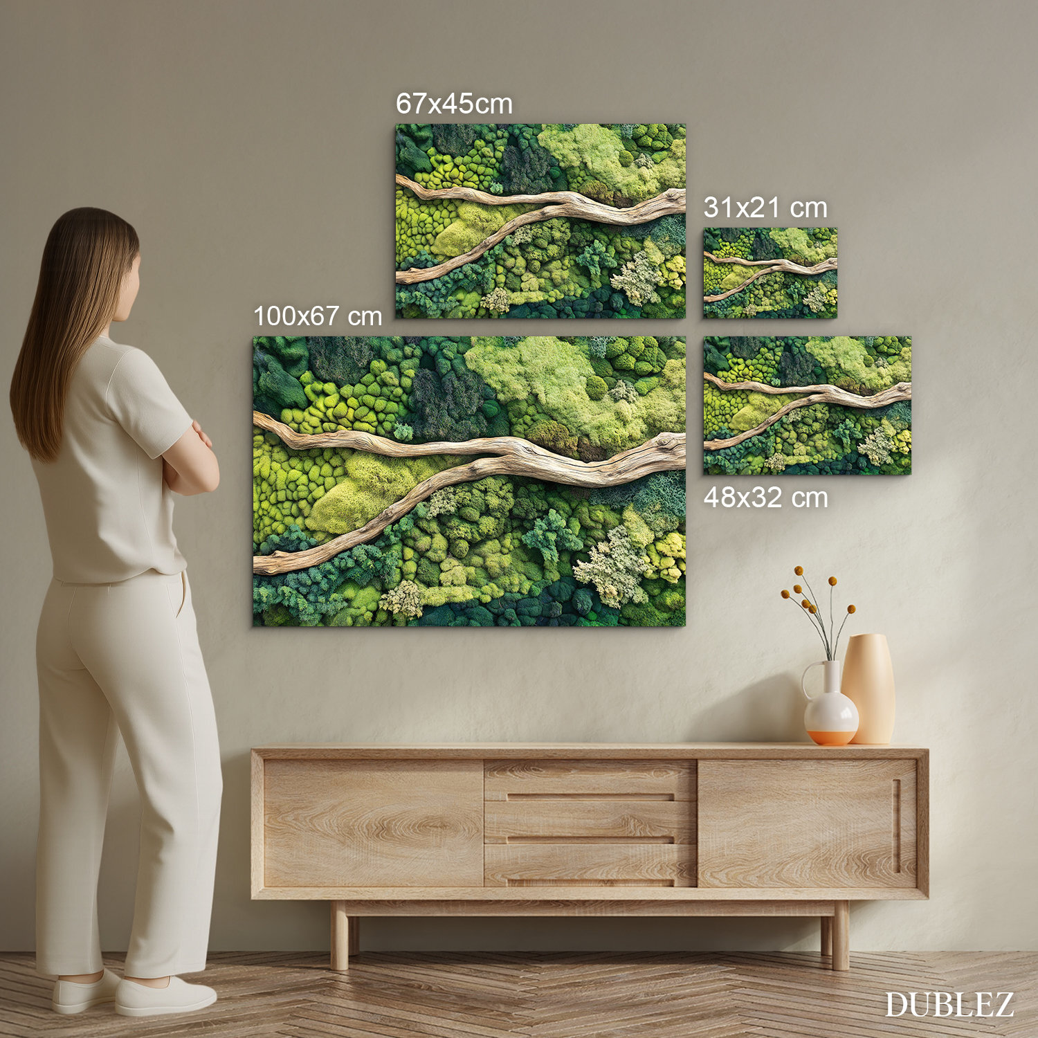Přineste si kousek lesa do interiéru s dřevěným obrazem od DUBLEZ, který realisticky imituje krásu přírodního mechu a větve stromu. Jedinečný design je vytištěn na silné dřevěné desce, čímž vytváří přirozený a elegantní vzhled, který se hodí do obývacího pokoje, kanceláře nebo ložnice. Obraz zachycuje všechny odstíny zeleného mechu, čímž navozuje efekt nedotčeného lesa.