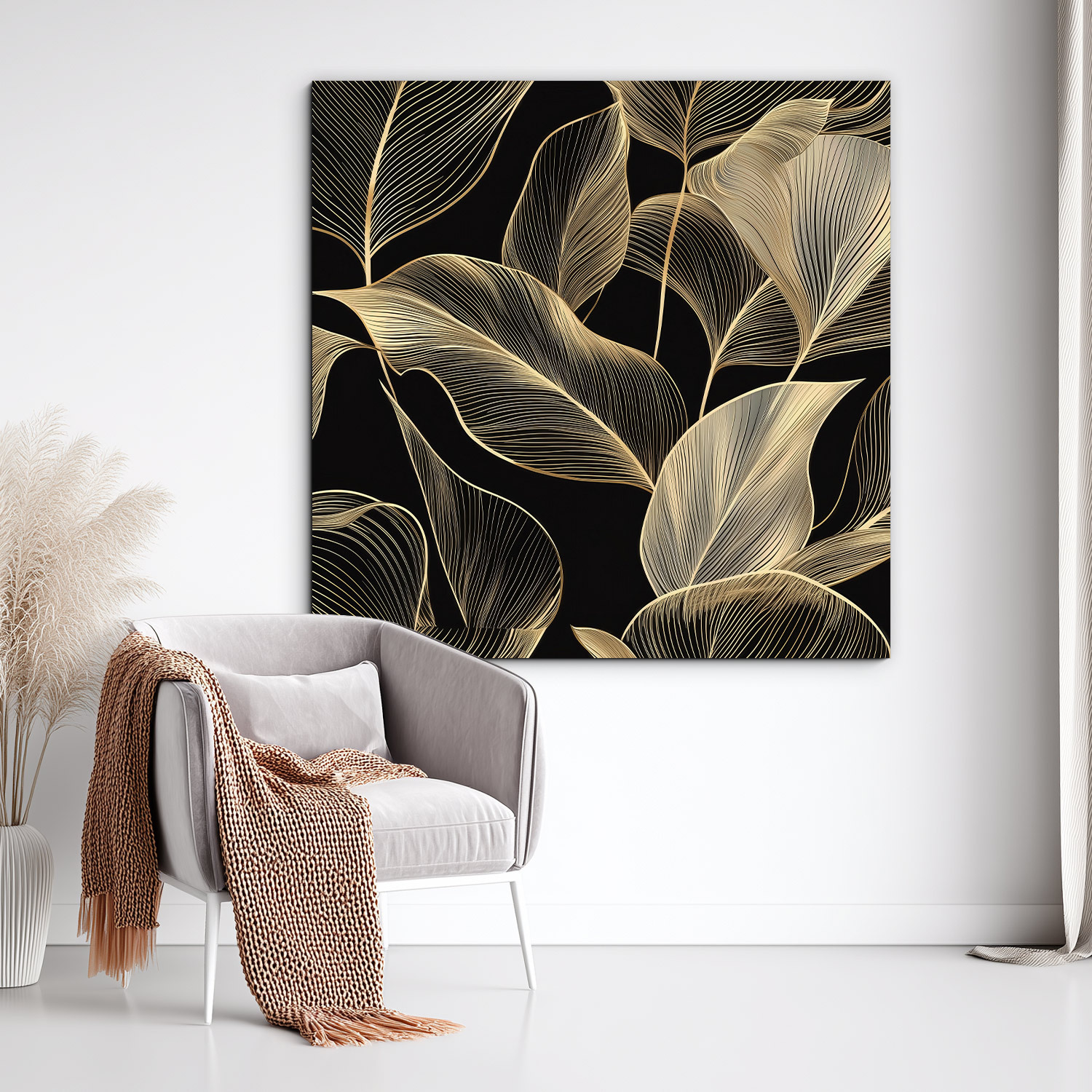 • Luxusní obraz - Zlaté linie listů