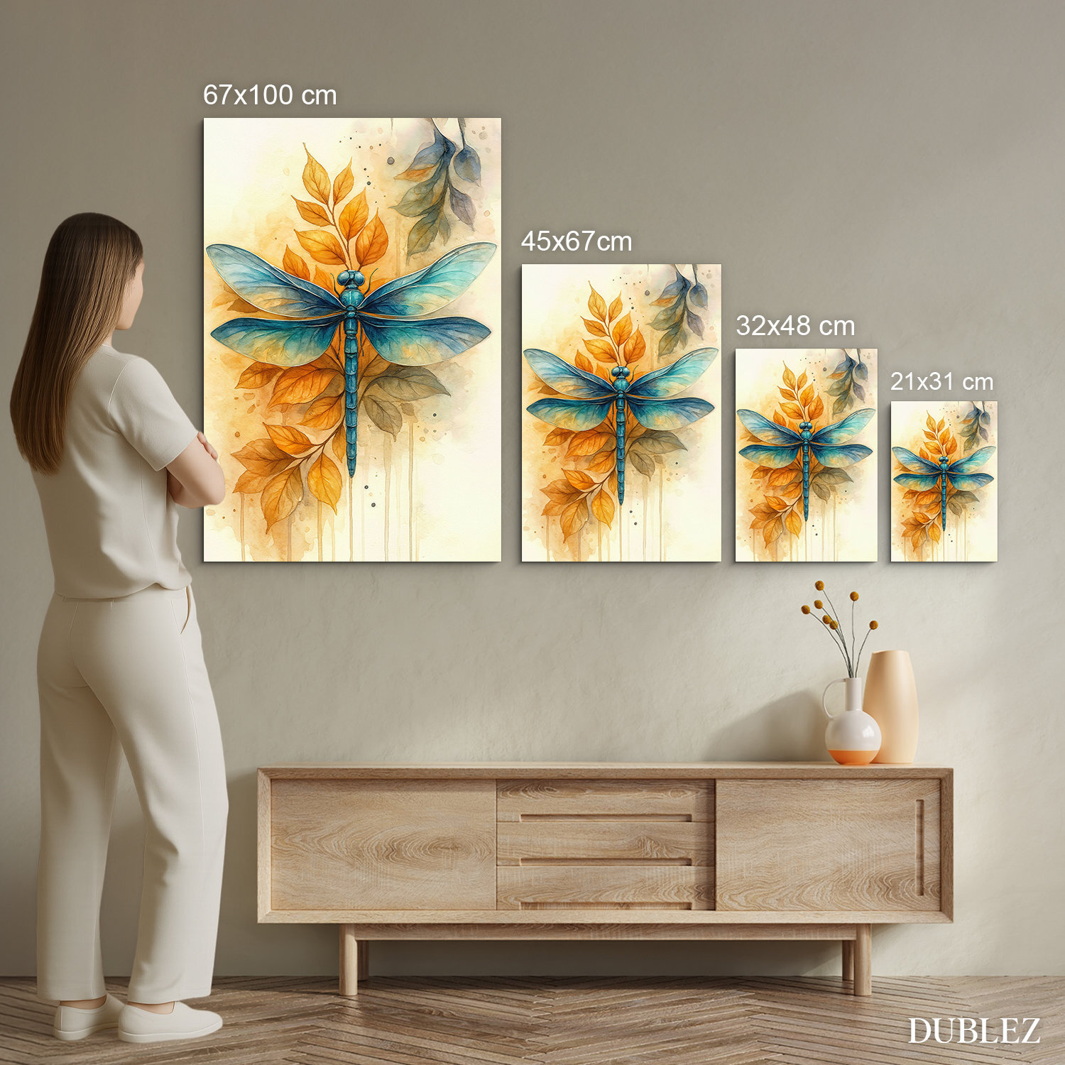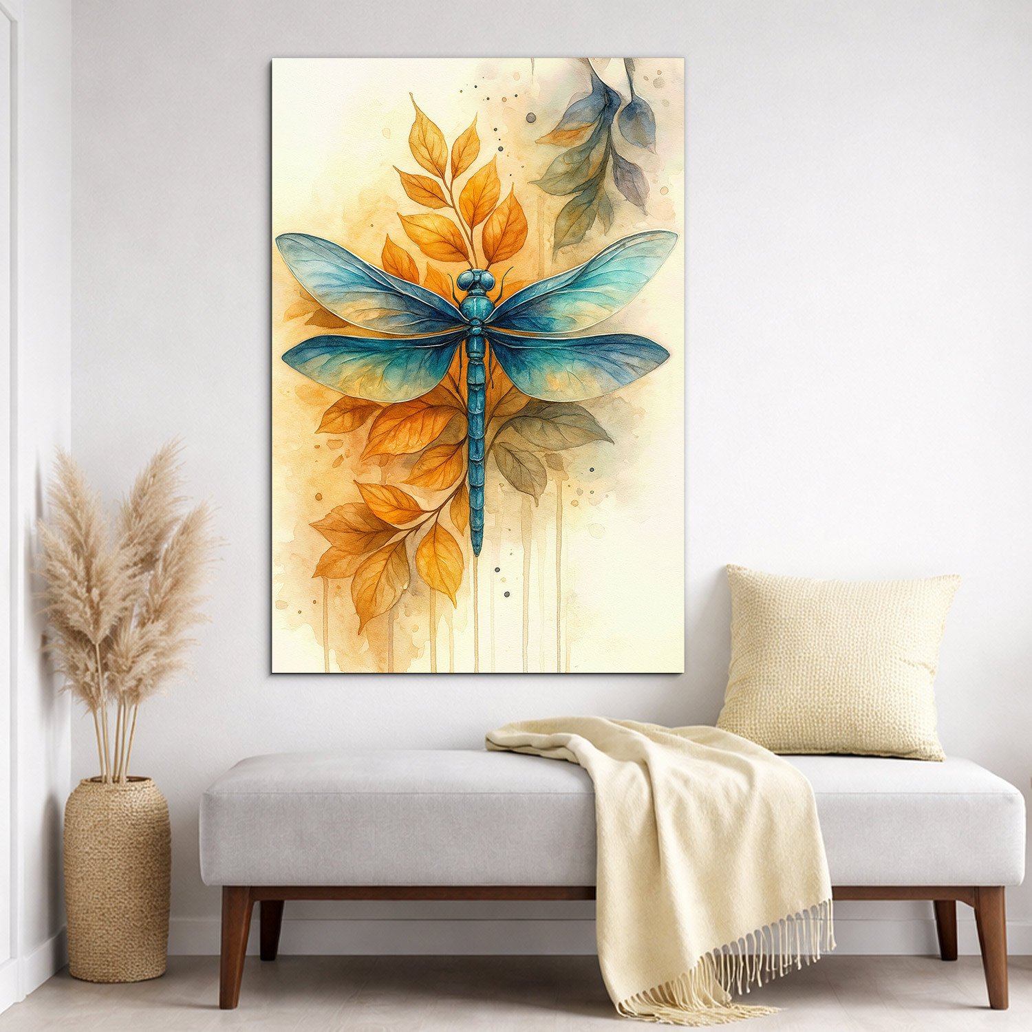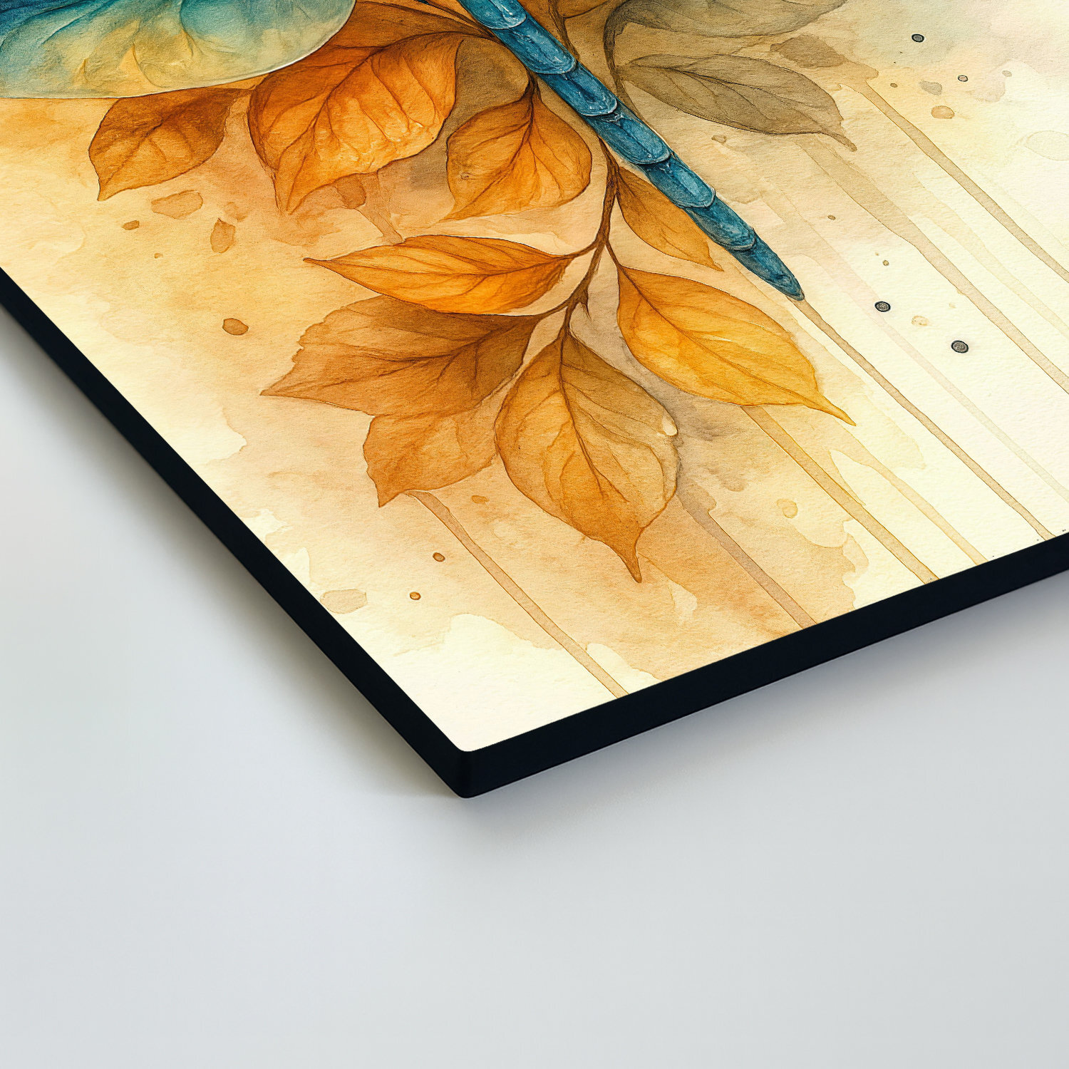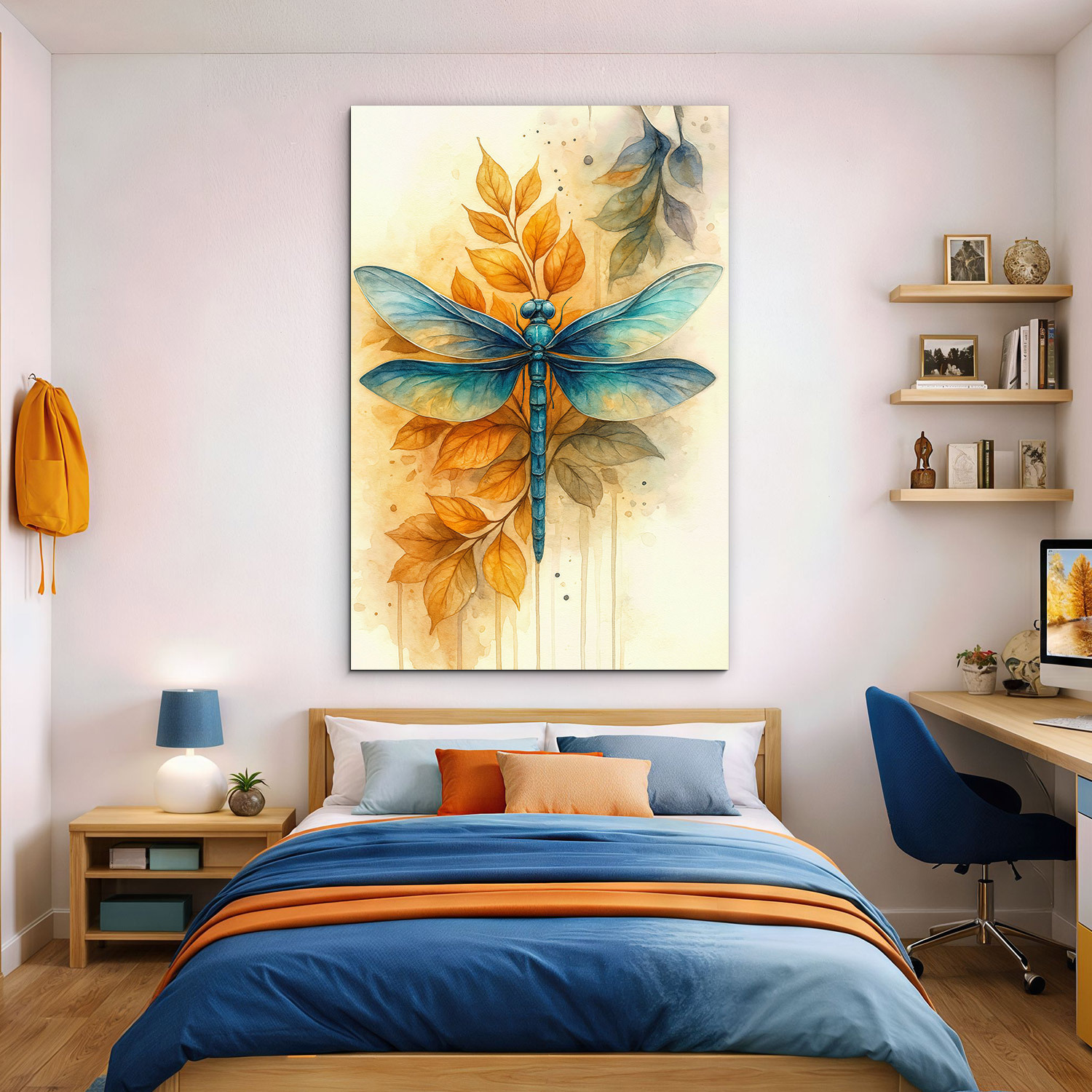 Dřevěný obraz s motivem modré vážky ve stylu malby přináší do interiéru jemnost, lehkost a přirozenou eleganci. Výrazná modrá vážka v kombinaci s teplými podzimními listy vytváří harmonický kontrast, který působí něžně, svěže a zároveň velmi dekorativně. Jemné linie, akvarelový efekt a vyvážené přírodní barvy dělají z tohoto motivu vkusný doplněk do obývacího pokoje, ložnice, pracovny i předsíně. Krásně vynikne v moderním, přírodním, boho i romantickém interiéru a potěší také jako originální dárek pro ženu, milovnici přírody, maminku, sestru nebo kamarádku, která má ráda jemné dekorace a přírodní motivy.