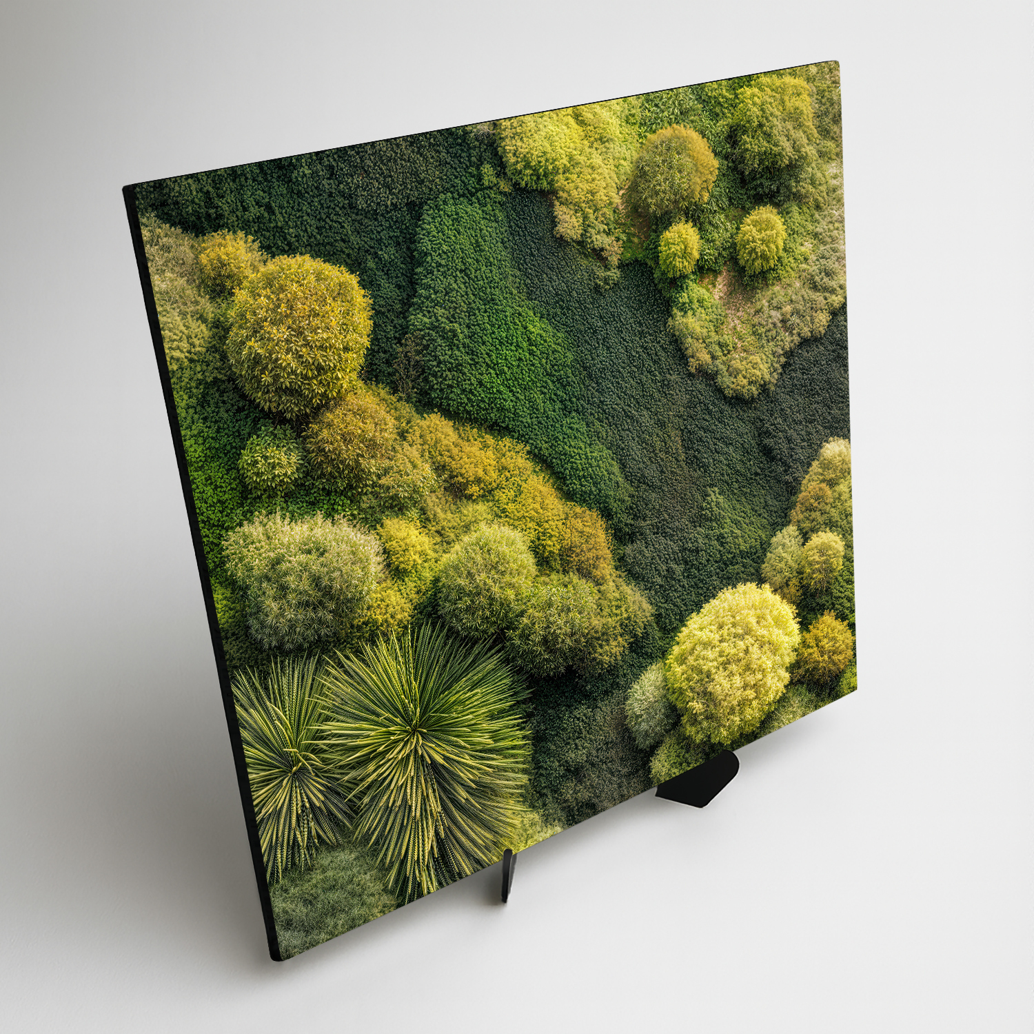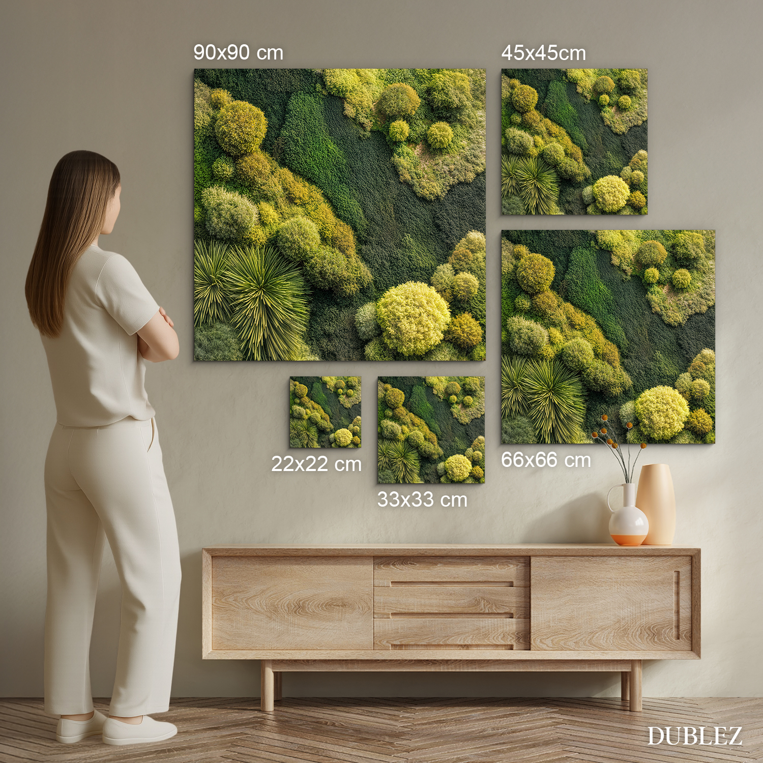 Přineste si kousek přírody přímo domů s obrazem inspirovaným mechem. Různé druhy rostlin a mechů připomínají skutečný stabilizovaný mechový obraz – ale bez údržby. Obraz je tištěn vysoce kvalitní UV technologií na dřevěný podklad, což mu dodává nejen přirozený vzhled, ale také odolnost a dlouhou životnost. Hodí se do moderních i rustikálních interiérů.