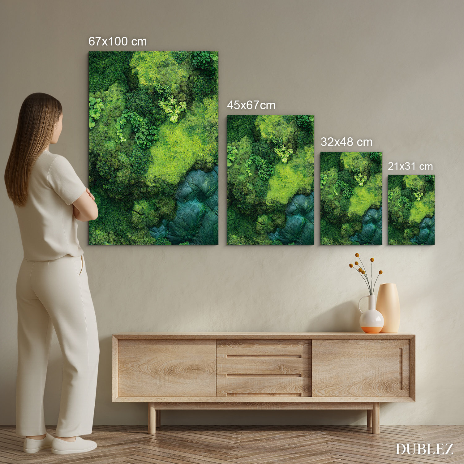 Přidejte do svého domova nebo kanceláře kousek přírody s tištěným mechovým panelem, který zachycuje různé odstíny zelené, detaily mechu, listů a skal. Obraz mechu vytištěný na silné dřevěné desce vnese do prostoru klid a nadčasovost. Na rozdíl od živých rostlin nepotřebuje žádnou péči – jeho barvy zůstávají stále intenzivní, bez opadávání nebo blednutí. Mechový panel doporučujeme umístit do moderních, minimalistických interiérů.