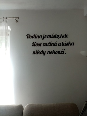 Součástí citátu či nápisu je oboustranná pěnová lepicí páska, díky které dekoraci snadno připevníte na stěnu. K produktu přikládáme i navigační šablony, se kterými nalepíte citát přesně tak, jak je zobrazený na ilustrační fotografii.