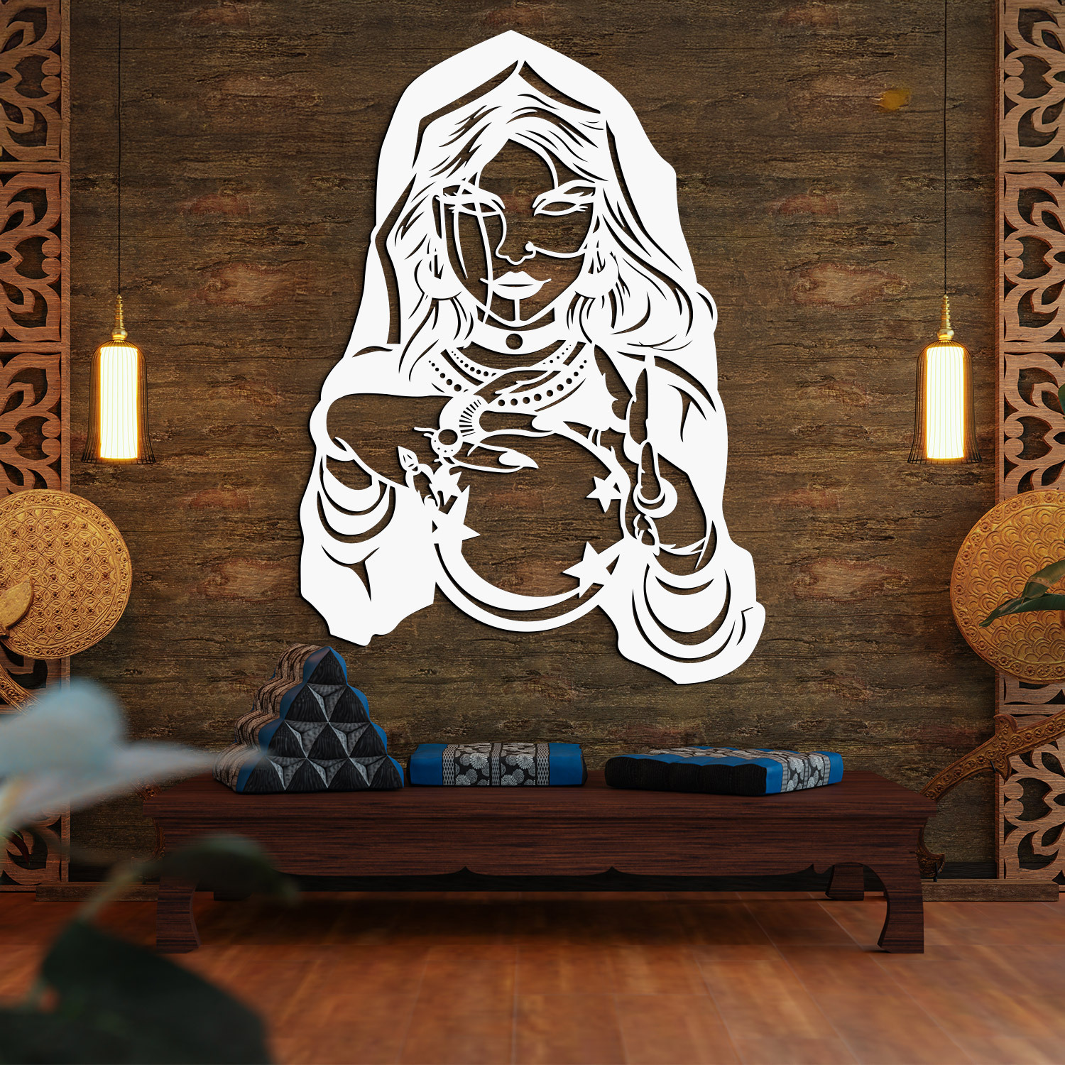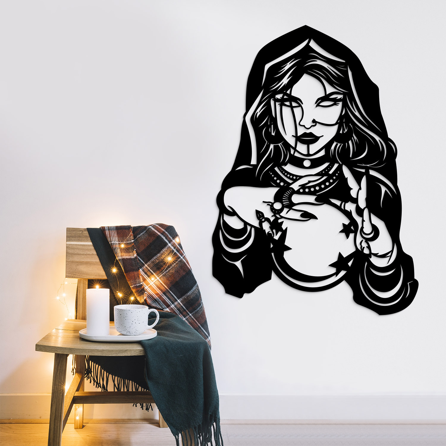 Vyřezávaný nástěnný obraz věštkyně s křišťálovou koulí přináší do interiéru mystickou atmosféru a nádech tajemna. Detailní zpracování a originální design dělají z tohoto dřevěného obrazu jedinečný doplněk, který okamžitě přitáhne pozornost. Nástěnný obraz je také perfektním dárkem pro lidi, kteří milují mystiku, fantasy nebo ezoteriku.