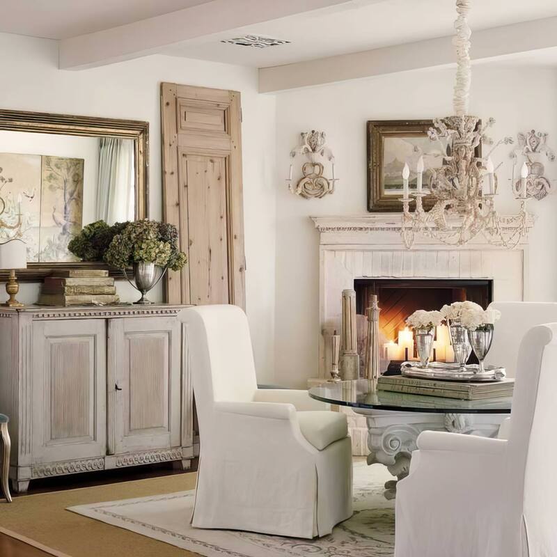 - Paleta pastelových barev - Vintage barevná paleta z tohoto období je velmi jemná a ženská. Neutrální barvy, jako je bílá, krémová a béžová, jsou často vrstveny s jemnými šedými a bledými pastelovými barvami. Jde například o barvy, jako je modrá, světle růžová a fialová. Jednoduché barevné schéma můžete doplnit tapetovanou akcentovní stěnou s květinovým vzorem, abyste místnostem dodali ještě více vintage stylu.