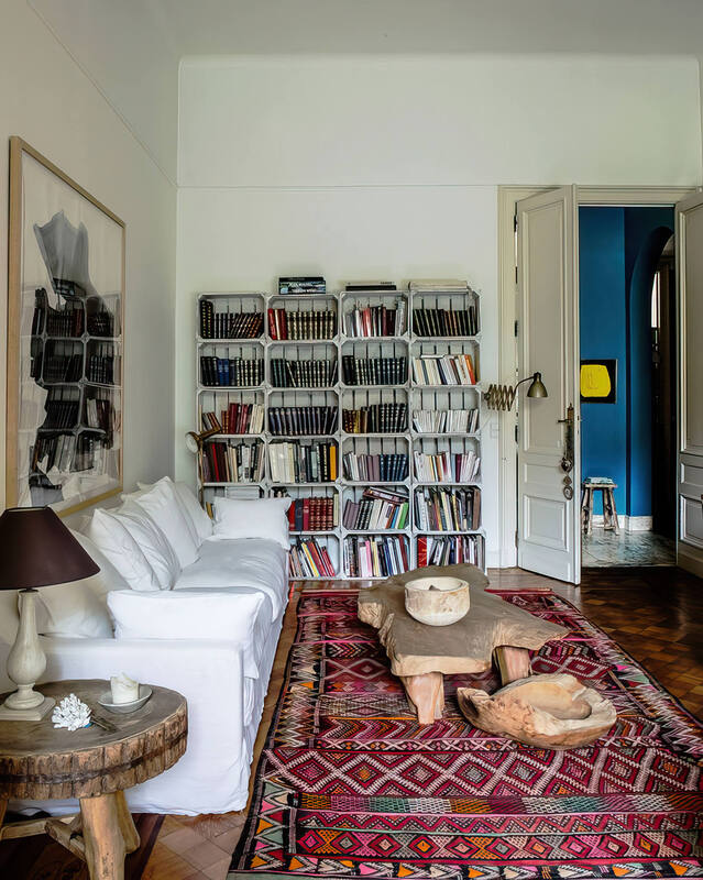 Na stěny byste měli zvolit jednotnou barvu, například šalvějovou zelenou, která vynikne zejména v kombinaci s tmavšími zelenými doplňky. Červená naopak rozzáří místnost a doplnit ji můžete stojací lampou nebo vázou. Jasná modrá velmi dobře vypadá se sametovou pohovkou a v tomto chladnějším odstínu skvěle vynikne s ručně tkaným kobercem s grafickým vzorem.