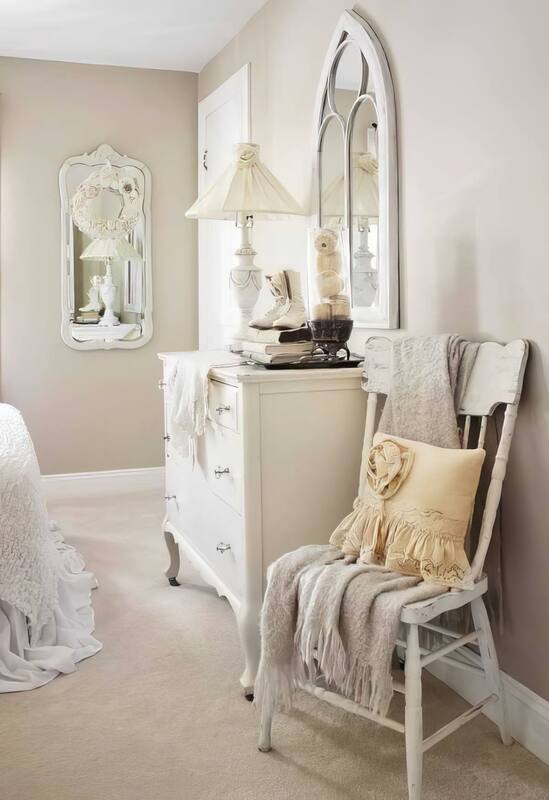 Doplňky jsou lepidlem, které drží celé schéma pohromadě, a výrazné zrcadlo se starožitnými detaily vytvoří pozoruhodný středobod. Pokud je rám natřený, nechte tuto barvu i na ostatní doplňky – komoda, příležitostná židle či vázy.