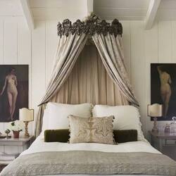 Přidání korunky a látkového baldachýnu nad postel je skvělý způsob, jak vytvořit romantický stř edobod v ložnici. Tyto prvky, které původně sloužily k zajištění soukromí a jako symbol bohatství a postavení, se dnes používají dekorativnějším způsobem. Mohou pomoci vytvořit útulný a intimní pocit, který oceníte v nejedné vintage ložnici.