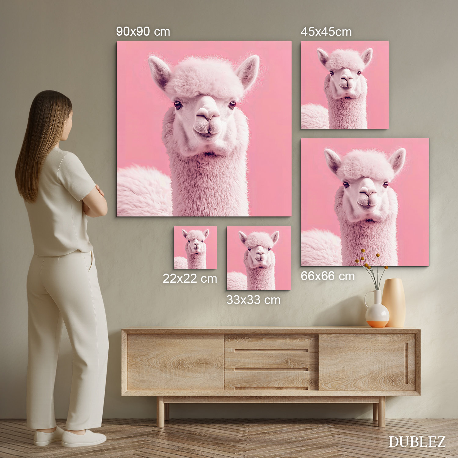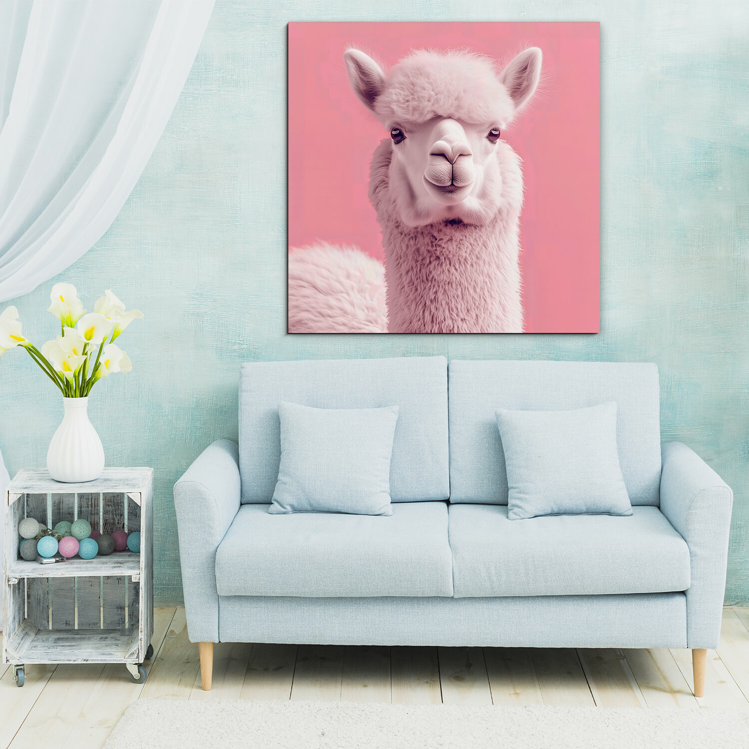 Barevný obraz lamy na růžovém pozadí je hravá a moderní dekorace, která okamžitě upoutá pozornost a rozjasní každou místnost. Jemné pastelové tóny v kombinaci s roztomilým výrazem lamy vytvářejí veselou a přátelskou atmosféru. Perfektně se hodí do dětského pokoje, kanceláře či obývacího pokoje a je také originálním dárkem pro všechny milovníky zvířat a designových doplňků.