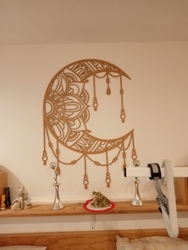 Ozdobte stěny své ložnice velkým dřevěným lapačem snů - Moon. Tajemný lapač snů v sobě skrývá mandalu a klid noční oblohy symbolizující měsícem. Dřevěný lapač snů - Moon je ideální do ložnice nebo nad postýlku v dětském pokoji, kde bude působit uklidňujícím způsobem během spánku.