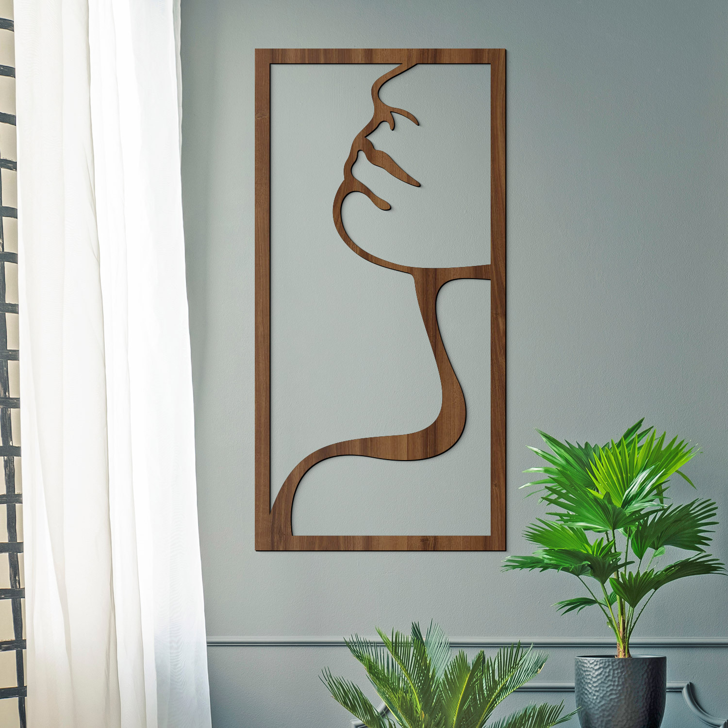 Vyřezávaný obraz Linie ženy je dřevěná dekorace, která do interiéru přináší jemnost a styl. Minimalistické linie zobrazující ženskou tvář působí čistě, moderně a zároveň umělecky. Obraz ženy je ideální pro milovníky jednoduchosti, estetiky a nadčasového umění.